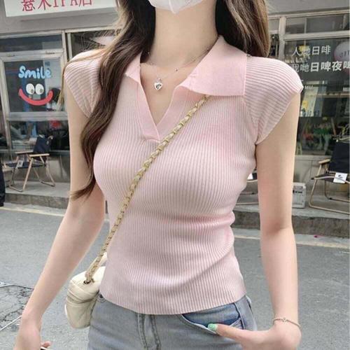 [셀럽하우스]베이직한 EYUE0663 컬러감 슬림핏 여성 카라 민소매 니트티셔츠