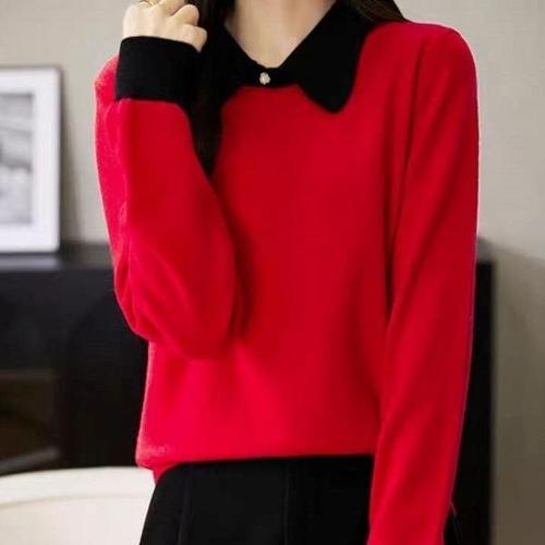 [엄지척]오피스룩 심플핏 여성 카라 배색 심플 니트 레드_19803713_667501