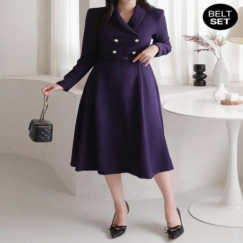 (~XXL까지) 아엘르 노치드카라 벨트세트 트위드 플레어 원피스 겨울 오피스룩 하객룩 연말룩 빅사이즈