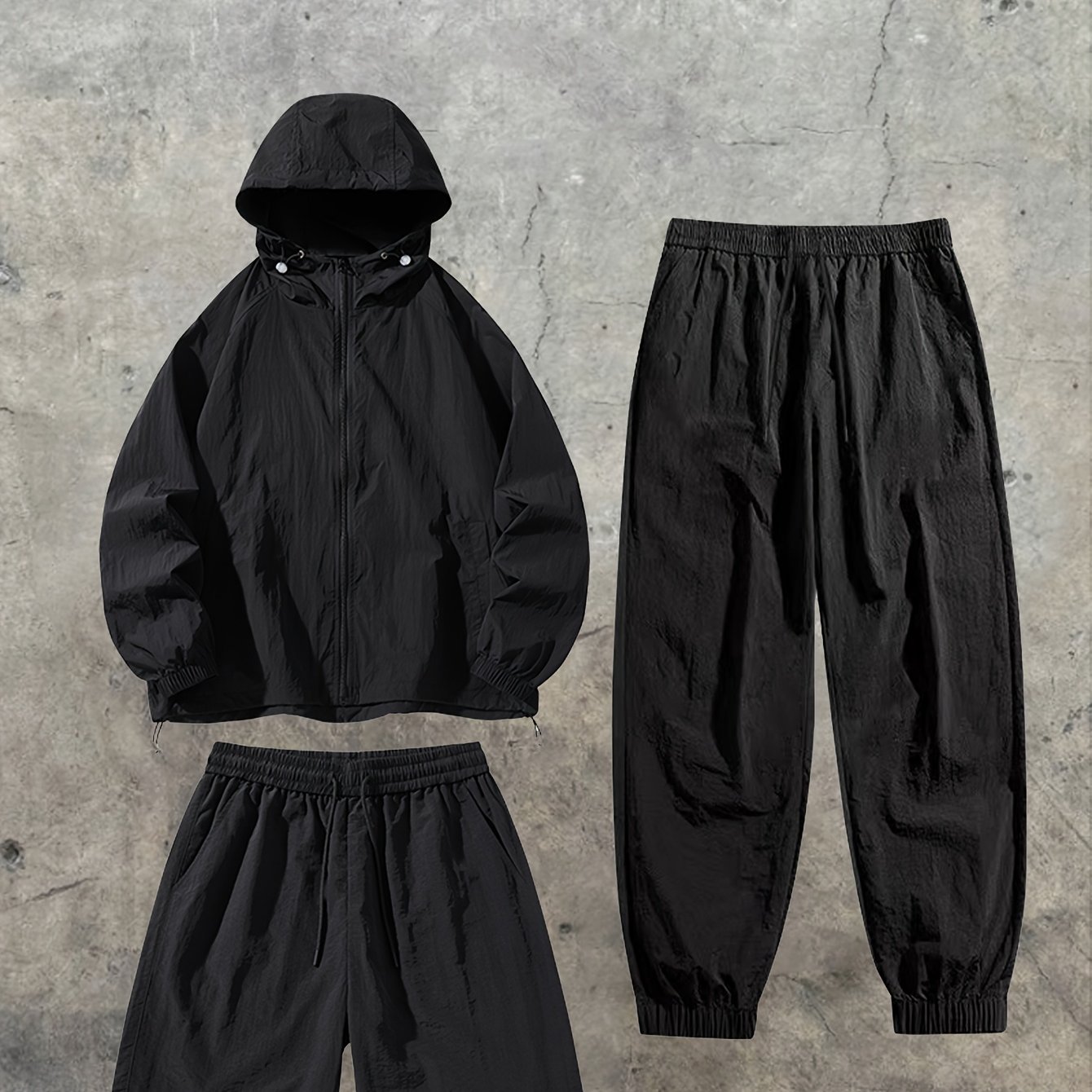 TEMU 남성 여름 핫 스타일 스포츠 아웃도어 후드 커버올스 하이킹 수트