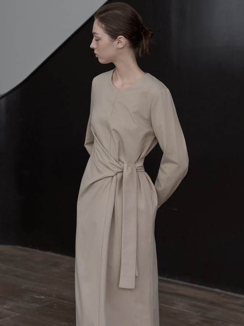 [아무르 무아르] 레프트 타이 원피스 베이지 amr2140