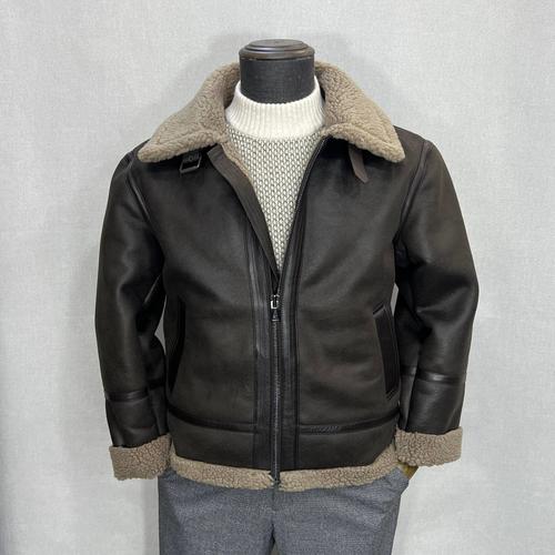 [바쏘옴므]천연 양가죽 배색 페이커 레더 무스탕 점퍼 브라운 Z4UA46A-2