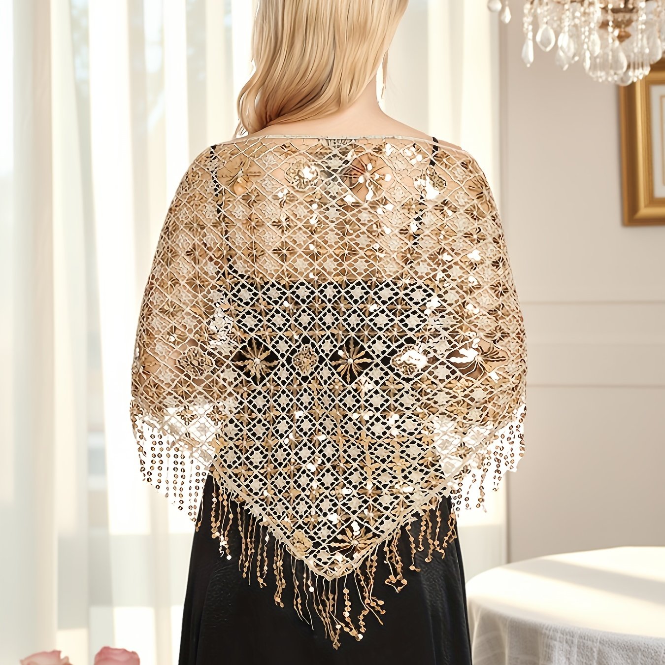 TEMU 여성을 위한 우아한 1920년대 빈티지 법정 스타일 시퀸 이브닝 드레스 - 소매 없는, 프린지 디테일, 스트레치되지 않는 원단, 봄/여름/가을 파티 및 갈라, 공식 행사 의상 | 프린지 디테일 셔울 | 스트레치되지 않는 원단