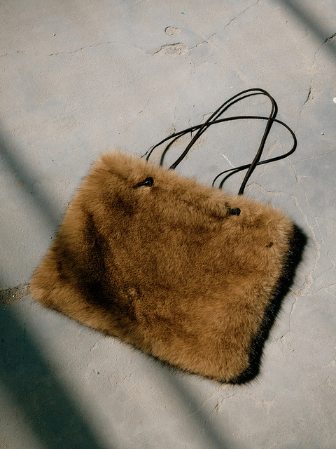 [그린버터] Ombre Fur Leather Bag (Camel)