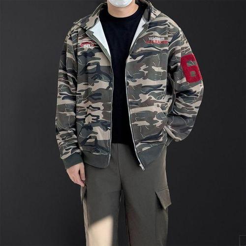 레트로 루즈핏 카모 캐주얼 롱 슬리브 밀리터리 캠프루 후드집업 스웨트셔츠 아우터