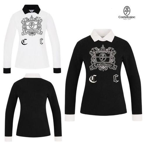 [까스텔바작]까스텔바작 여자 골프 니트카라 가슴자수 겨울 긴팔 도톰한 티셔츠 BGEWTL-702 CA3825342