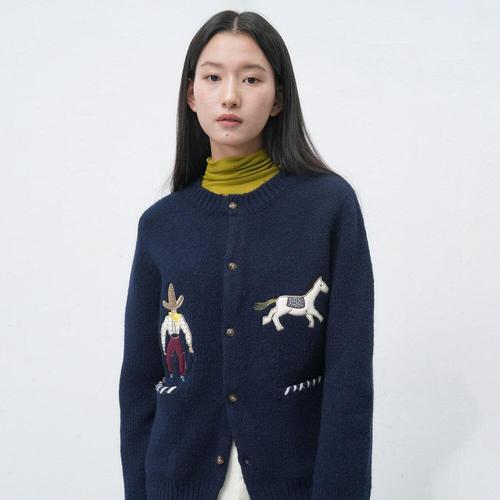[제너럴아이디어]UNISEX 카우보이 크루넥 가디건 [NAVY] / SBE4U04013-WOMAN