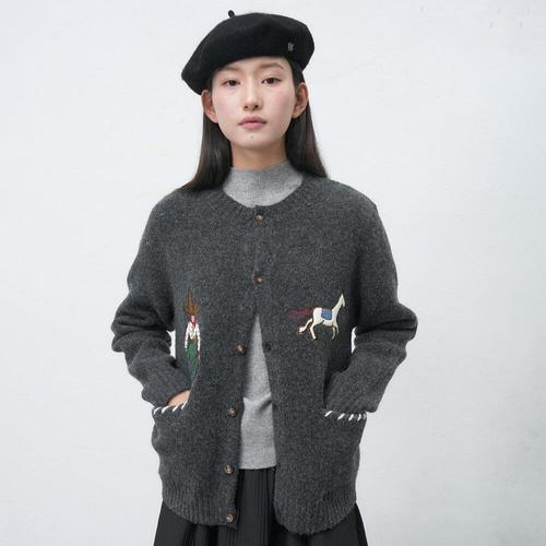 [제너럴아이디어]UNISEX 카우보이 크루넥 가디건 [CHARCOAL] / SBE4U04013-WOMAN
