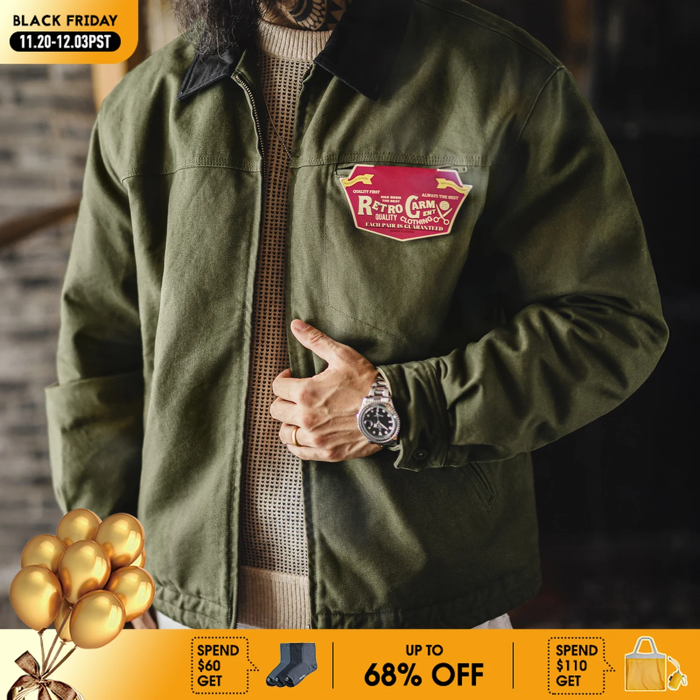 메이든 빈티지 남성용 J001 디트로이트 재킷 라펠 칼라 따뜻한 퀼팅 작업 재킷 헤비웨이트 코튼 사파리 코트 가을 겨울용