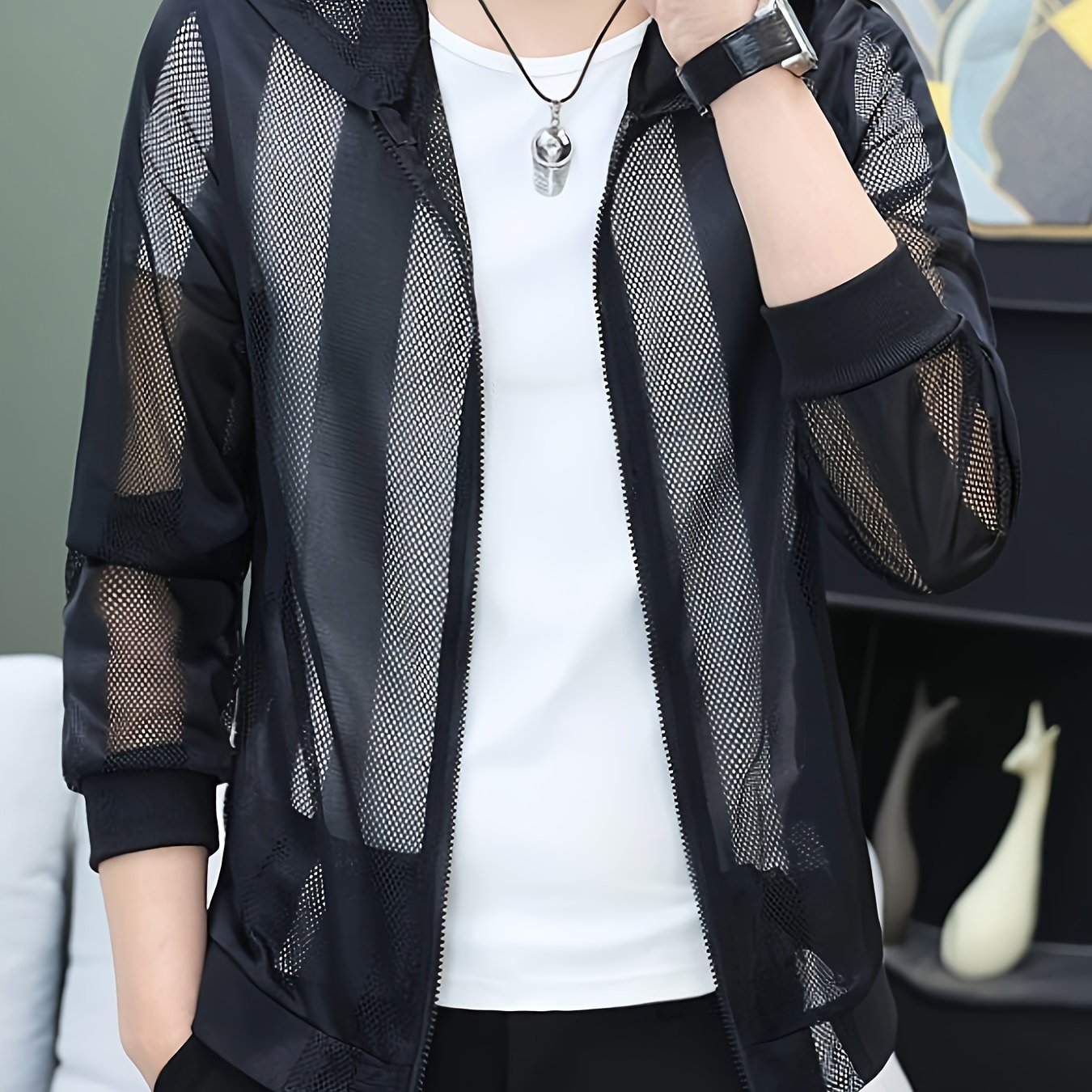 TEMU 남성용 홀아웃 울트라 씬 후드 아우터웨어 여름 의류