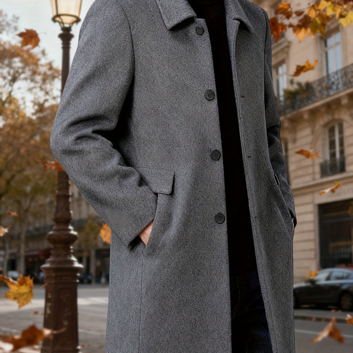 TEMU 남성 클래식 캐주얼 트렌치 코트 | 가을-겨울 신상 단색 사이드 포켓, 싱글 브레스트, 슬림핏 재킷