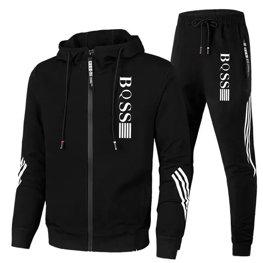 새로운 남성용 스포츠 및 피트니스 세트, 스포츠 바지, 남성용 후드 재킷, 남성용 러닝 세트 및 후드, 따뜻한 후드 스포츠 세트