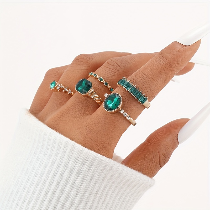 TEMU 우아한 반짝이는 반지 5개 세트 - 무도금 미네랄 컬러, 데일리 웨딩 선물, 사계절 활용 가능한 5링 세트 (도금 없음)