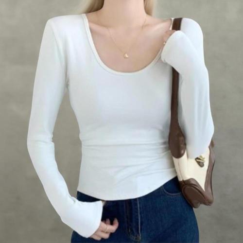 [미라클세븐]여성 유넥 긴팔 티셔츠 포근한 쫀쫀 무지컬러 셔링
