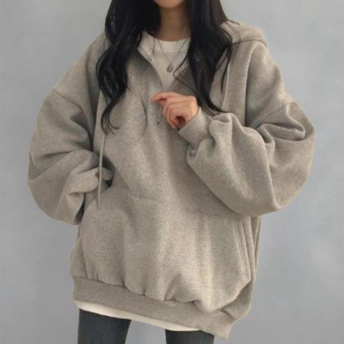 [미라클세븐]여성 빅사이즈 기모 후드 반집업 맨투맨 무지컬러