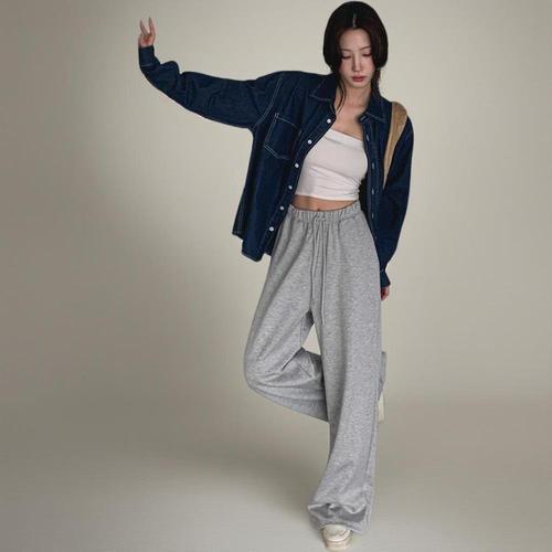 [미라클세븐]여성용 스판 밴딩 와이드 팬츠 데일리 무지컬러