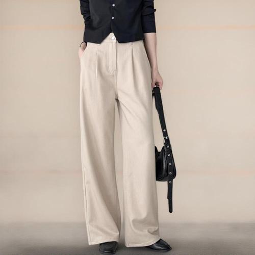 [미라클세븐]여성 무지컬러 면혼합 핀턱 세미와이드 코튼 바지