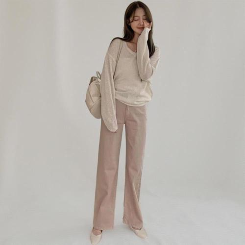 [미라클세븐]여성용 일상 코튼 스판 기본 컬러 일자 바지