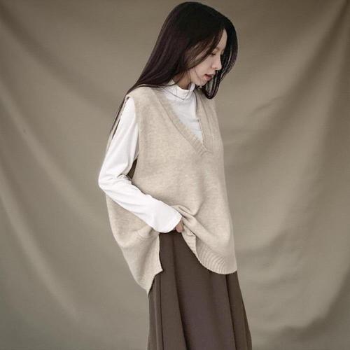 [미라클세븐]여성 브이넥 옆트임 니트 베스트 톤다운 컬러
