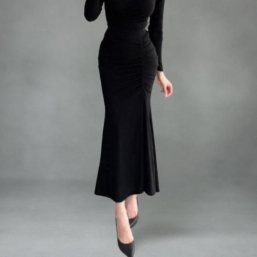 [미라클세븐]여성 무지컬러 핀턱 셔링 머메이드 스타일 롱 스커트