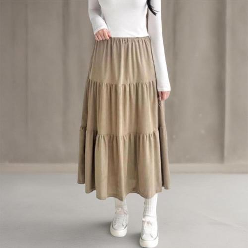 [미라클세븐]여성 스트리트 패션 무지컬러 플리츠 밴딩 롱 스커트