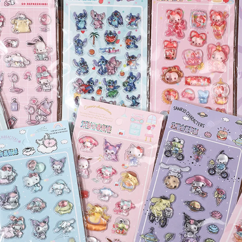 1-10개 만화 3D 헬로 키티 크리스탈 스티커 고품질 멜로디 솔리드 스티커 어린이 장난감 선물 DIY 다이어리 스티커