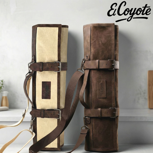 16oz 왁스캔버스, 2중 PU가죽, 30cm사시미수납, 10슬롯 + 1지퍼수납