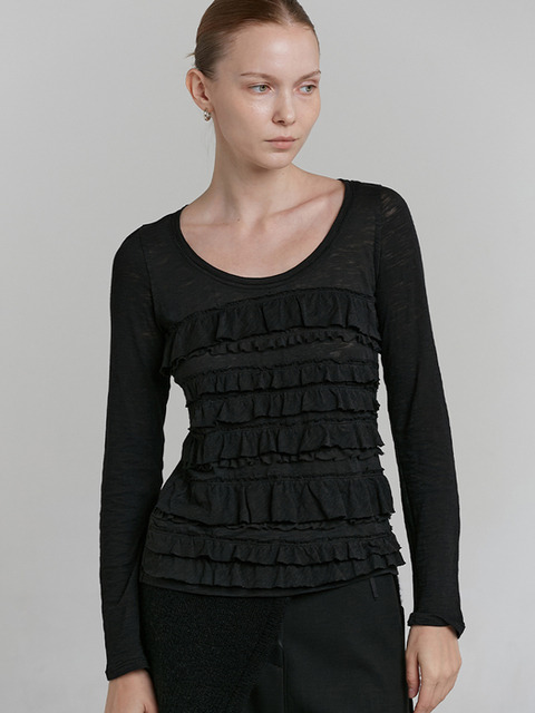 [로우타이드] FRILL U NECK T-SHIRT [BLACK]