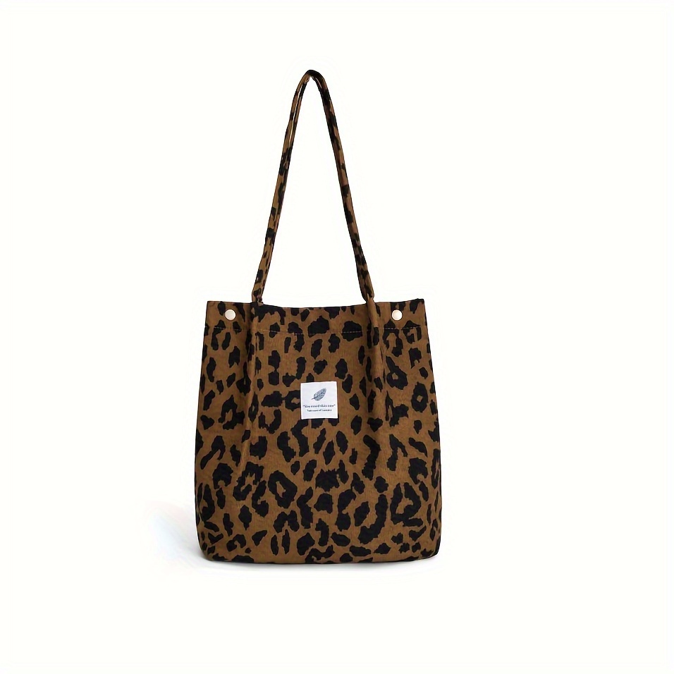 TEMU 싱글 프린트 숄더백, 브라운/그레이 프린트 코듀로이 핸드백, 여성 패션 가방.