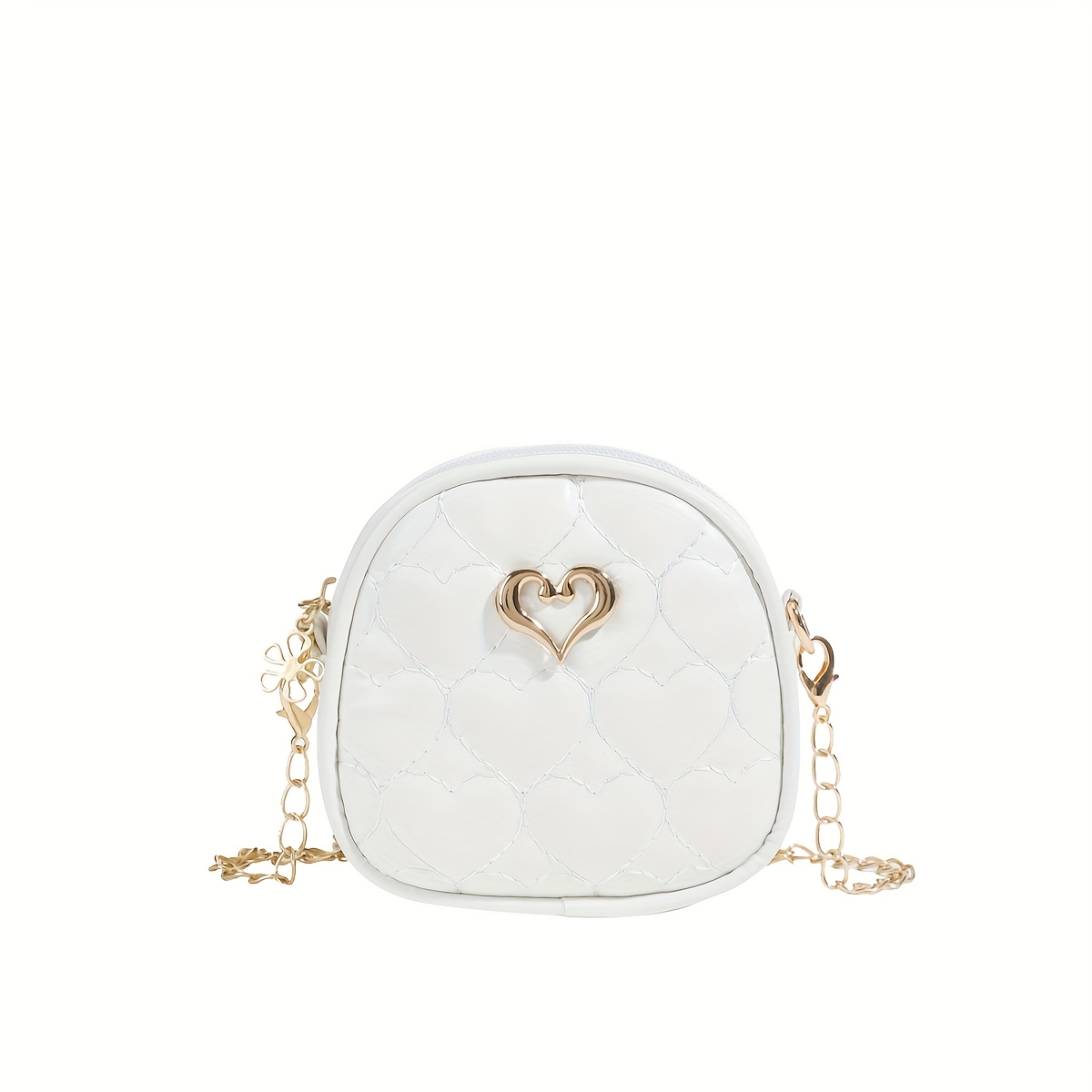 TEMU 여아용 귀여운 하트 퀼팅 크로스바디 가방, 작은 숄더 가방, 지퍼 잠금, 접이식 디자인, 폴리에스터 안감, 일상 출퇴근 액세서리, 작은 크로스바디 가방