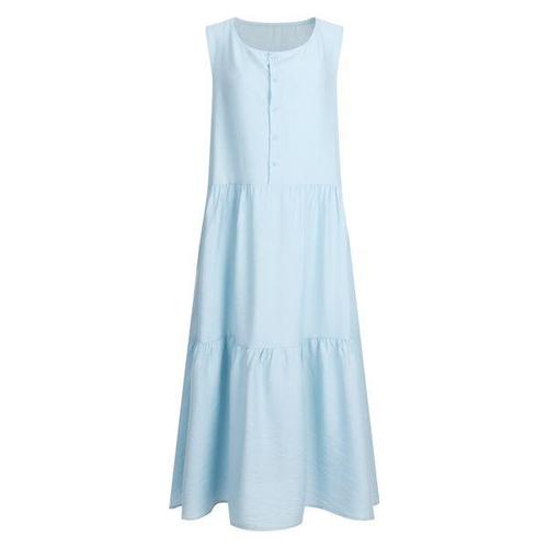 [샵앤]여성 민소매 3단 캉캉 루즈핏 롱원피스 NTT-WDR-20747-소라