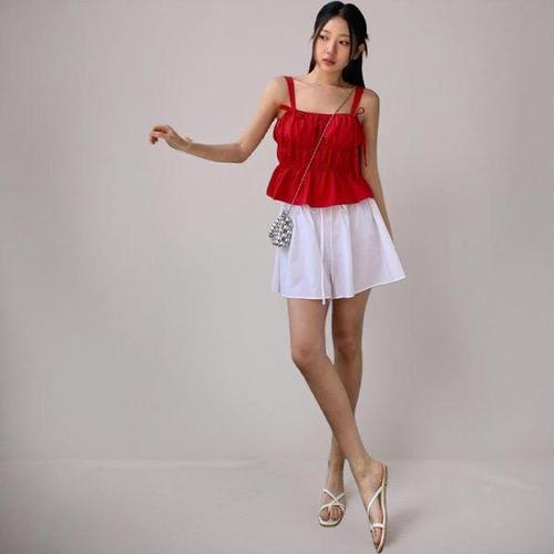 [샵앤]여성 끈나시 프릴 캉캉 플리츠 상하 세트 MCR-WSET-4690-소라