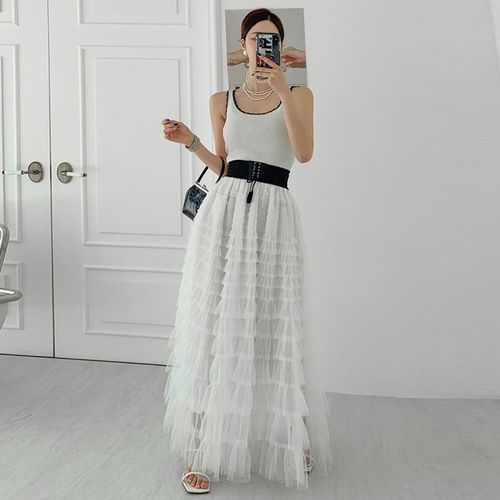[에이치플러스몰]멀티레이어 캉캉 밴딩 롱 스커트
