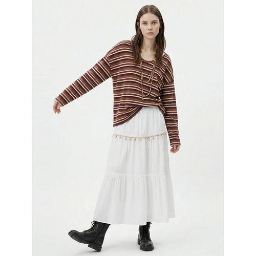 [샵앤]여성 밴딩 레이스 포인트 캉캉 플레어 롱스커트 EGG-WSK-21026-아이보리