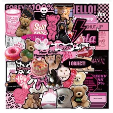 올리브파티 감성 캐리어 노트북 여행 방수 스티커 세트, 1세트, 핑키캣 55P