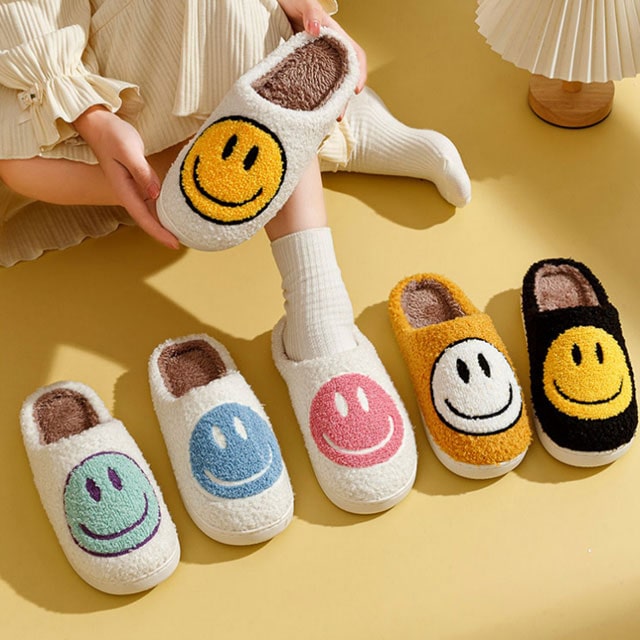 스마일 털 실내화 방한 사무실 보온 슬리퍼