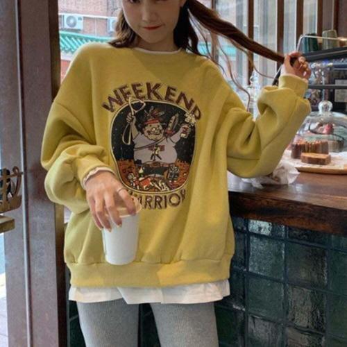[오너클랜]인기상품 여자 기모안감 캐릭터 포인트 겨울 맨투맨 레이어드 [WFKDFU3_260108]