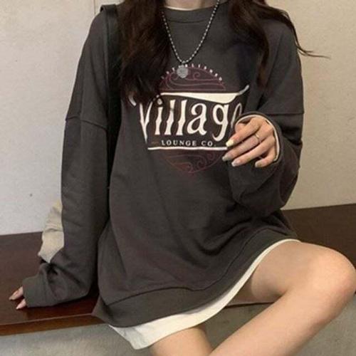 [옷자락] 여자 루즈핏 오버핏 라운드넥 면혼방 캐릭터 긴팔 맨투맨 티셔츠