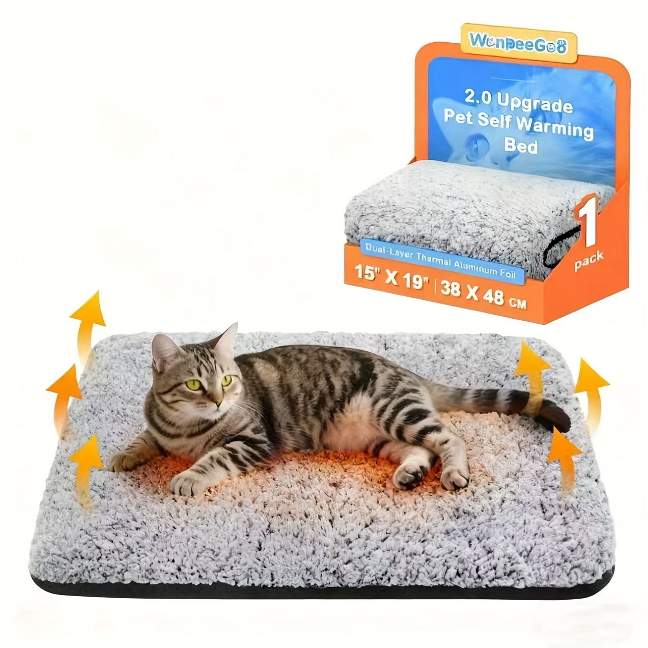 TEMU 초극세사 강아지 매트, 가을/겨울용 두꺼운 애완 동물 침대, 2.0 업그레이드된 이중 레이어 단열 알루미늄 포일 온열 패드, 케이지에 적합, 실내/실외 사용을 위한 푹신한 따뜻한 패드, 미끄럼 방지 따뜻한 강아지 하우스 패드, 온 패드, 단열 패드