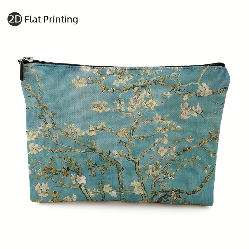 TEMU 1개 여성용 반고흐 아몬드 블라썸 화장품 가방 - 반고흐를 영감받은 플로럴 디자인, 반고흐의 아몬드 블라썸, 튼튼한 지퍼형 메이크업 정리함, 절친 선물, 양면 프린트, 문구류 보관, 고품질 프린트, 절친 선물, 메이크업 파우치, 파우치 화장품, 화장품 수납정리함, 파우치 소형
