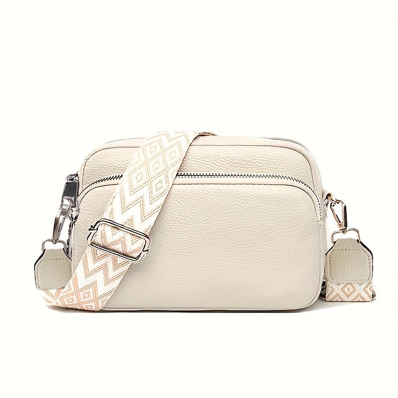 TEMU 패셔너블 여성용 어깨가방 - 조절 가능한 와이드 스트랩과 다중 지퍼, 다용도 크로스바디 백 | 일상용, 파티, 캐주얼 웨어 & 파티 액세서리에 적합 | 기하학적 패턴 디자인 소형 폴리에스터 안감 파우치, 블랙, 화이트, 브라운 색상 제공