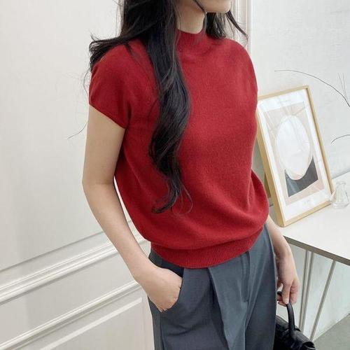[옷자락] 여성 무지 울혼방 캐시미어 목폴라 반팔 니트