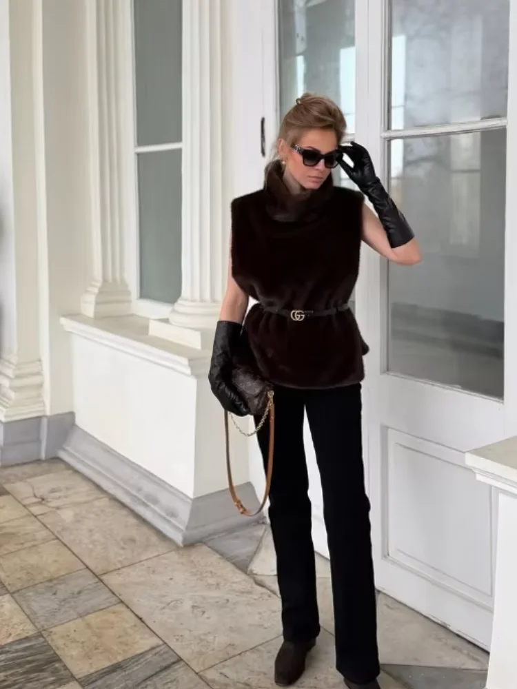 스타일리시 인조 모피 조끼 여성 시크 캐주얼 루즈핏 민소매 따뜻한 크롭 코트 2025 가을 겨울 여성 하이 스트리트 두꺼운 아우터웨어