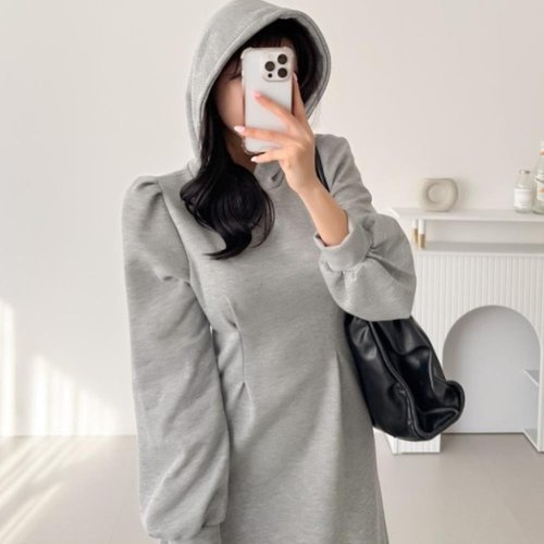 [미라클세븐]여성 핀턱 디테일 A라인 후드 롱 원피스 캐주얼 스타일