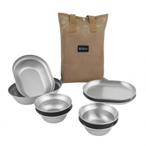 스텐 그릇 캠핑 식기 무광 가방세트 스텐접시 8P (444nB)