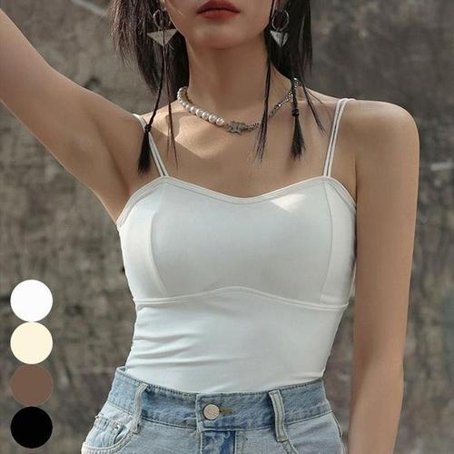 [라일리여성의류] Rly 쫀쫀한 내장 끈나시 두줄 크롭 민소매 캡 스판