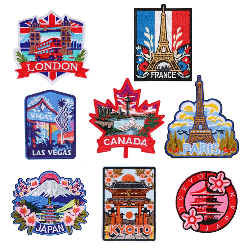 1개입 국가 관광 명소 자수 패치 자연 여행 애호가 랜드마크 배지 의류 자켓 트러커 모자 DIY 선물용