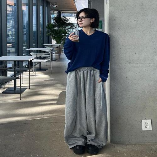 [원스톤]럭브 커브드 절개 핀턱 팬츠 3color 와이드 벌룬 남녀공용 커플룩 스트릿 탄탄