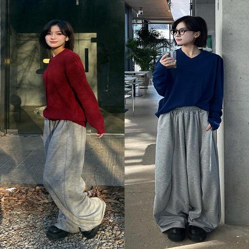[1+1두장묶음] 빠델 남녀공용 히터 헤비 골지 양털 코듀로이 커플룩 와이드팬츠 밴딩 팬츠