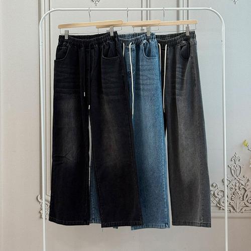 [옷자락] 남녀 커플 고양이 세탁 루즈핏 와이드 일자 면 청바지